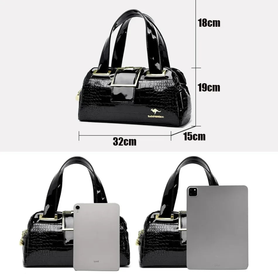 Deze handtas biedt voldoende ruimte voor al je essentials, van portemonnee en telefoon tot make-up en sleutels. Alles past georganiseerd in aparte vakken, waardoor je nooit hoeft te zoeken en je ochtendroutine en dagelijkse planning een stuk makkelijker verloopt.